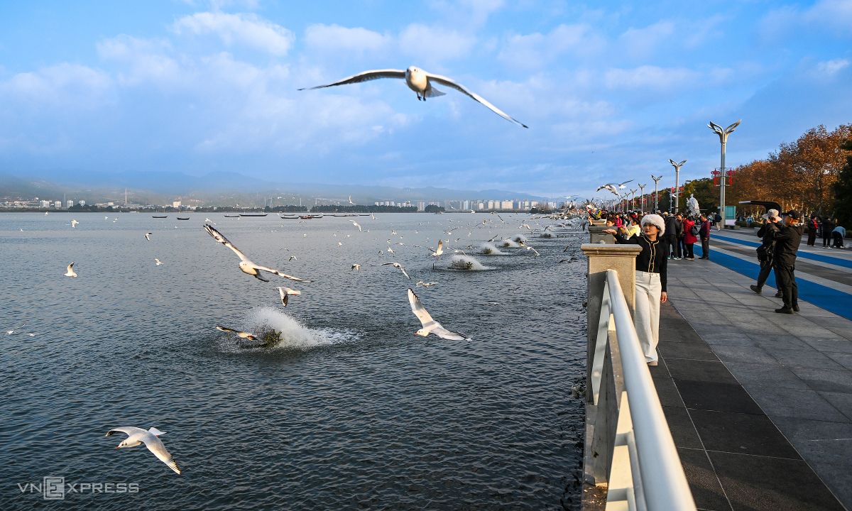 Hồ Điền Trì nổi tiếng với khung cảnh hàng chục nghìn con mòng biển di cư từ xứ lạnh tới tránh rét mỗi mùa đông.